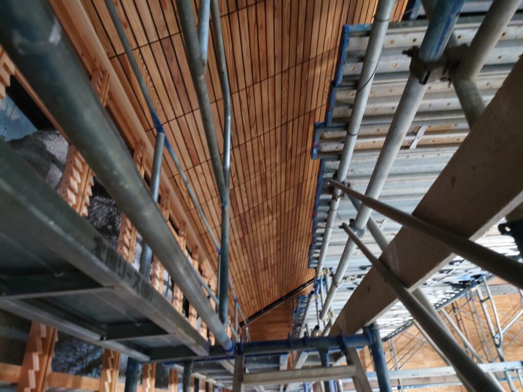 グループ会社の株式会社セルフネンは、国の特別史跡である福井県福井市「一乗谷朝倉氏遺跡(いちじょうだにあさくらしいせき)博物館(仮称)」の建設工事にあたり、不燃木材を供給しています。セルフネン不燃木材は、同博物館の天井及び壁面にふんだんに採用され、その施工面積は1,000平米を超える量におよびます。