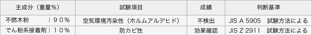 “不燃木粉”と“でんぷんのり”のシンプルな構成。